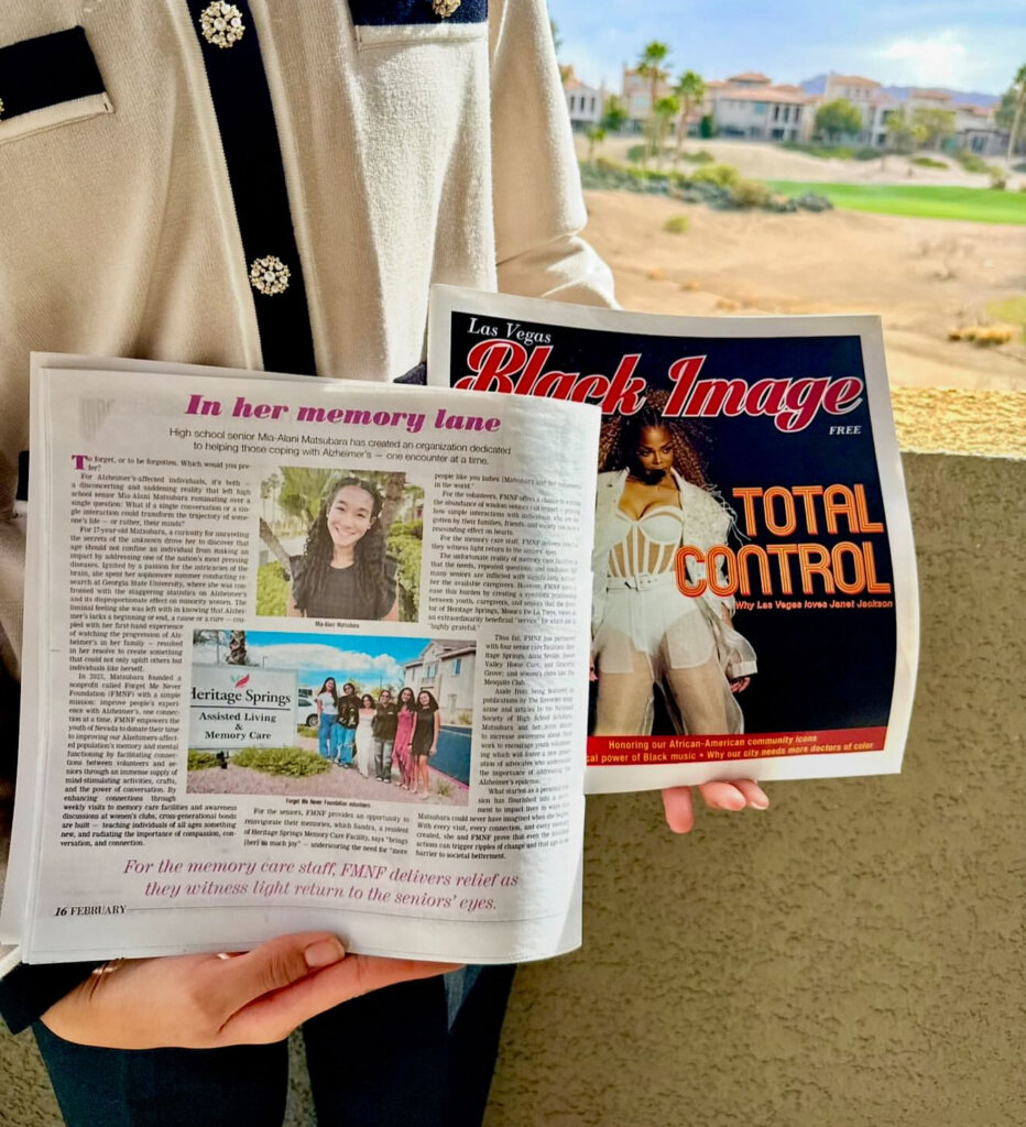Since its founding, Forget Me Never Foundation has expanded its impact across Nevada and New York, partnering with memory care facilities, healthcare organizations, and community leaders to deliver meaningful programming and raise awareness about Alzheimer’s disease and cognitive aging. Through service, education, and advocacy, we strive to create a model of youth-driven engagement that brings joy, connection, and understanding to every community we serve.